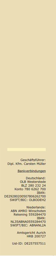 *Die Versandkosten beinhalten einen Standardversand frei Deutschland ohne Inseln. Inselzuschläge und Versandkosten Ausland auf Anfrage